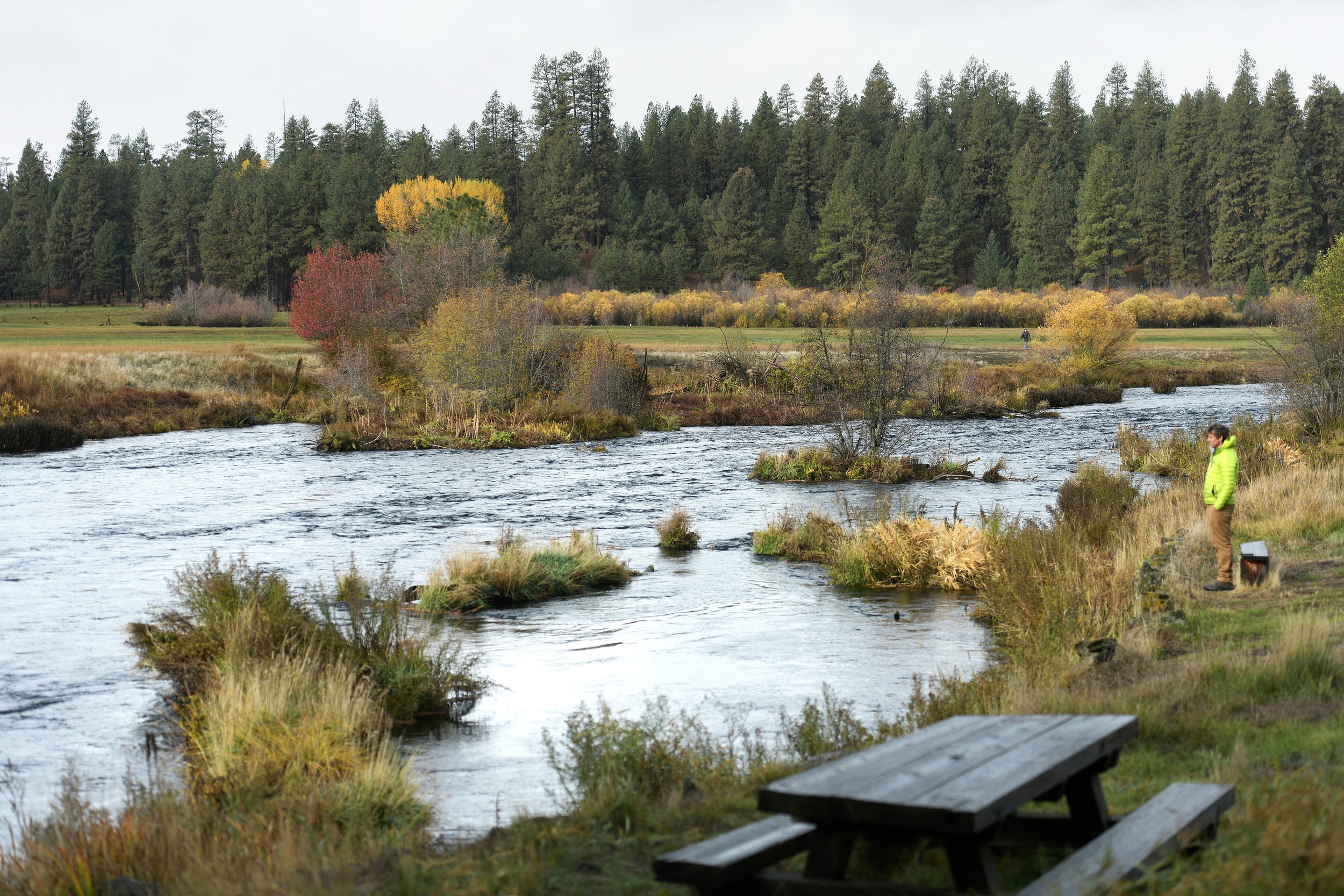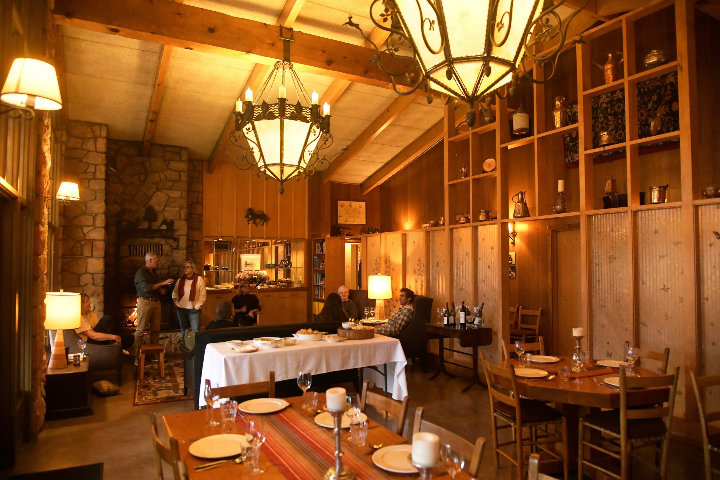 The setting couldn’t have been more perfect for a fall gathering. House on Metolius sits on the bank of that eponymous river surrounded by huge ponderosa pines. The property, two hundred private acres adjacent to millions of acres of national forest, has been a beloved retreat for more than one hundred years. The current house was constructed in 1958-59 by Portland Architect R. D. Kennedy, of Regal Building by the grandfather of the current owner, Tor Lundgren. It’s a single story, with one long wing housing the guest rooms and the other a grand living room. A dining room and cozy sitting room share the middle of the house with the kitchen. The interior design has signature Pacific Northwest warmth with palpable Scandinavian hygge. Behind the house, a lawn and stone patio overlook a broad meadow, the river, and Jack Creek curving toward the mountains. Carved stone steps descend to a path, and a wooden bridge leads to several small cabins set under the trees.